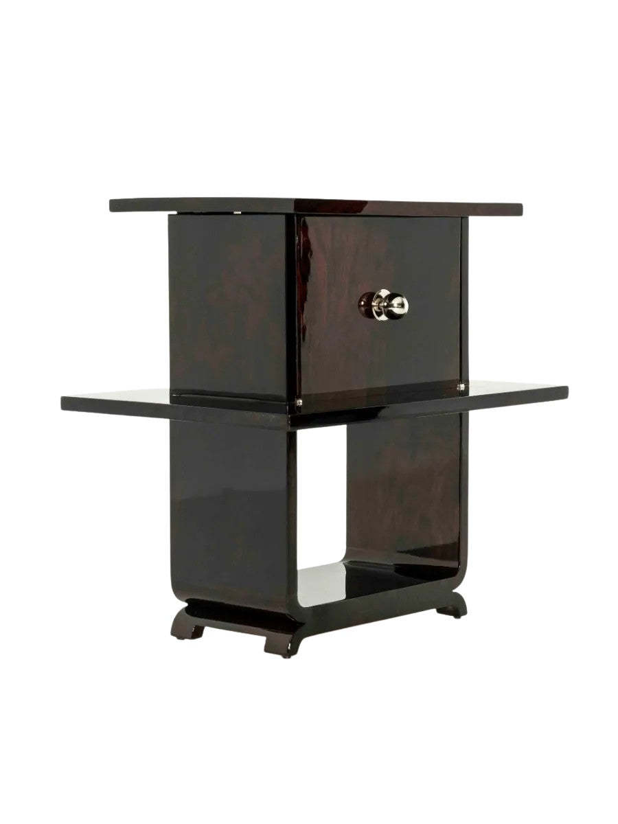 Art Deco Bedside Table with Piano Lacquer and Jewelry Box, 1930s