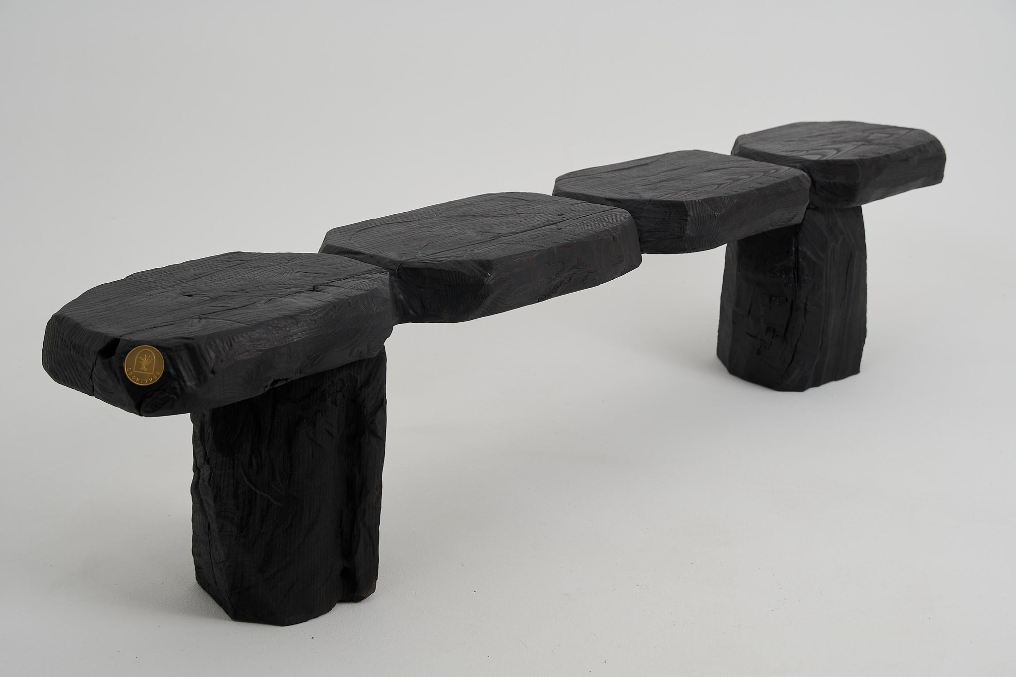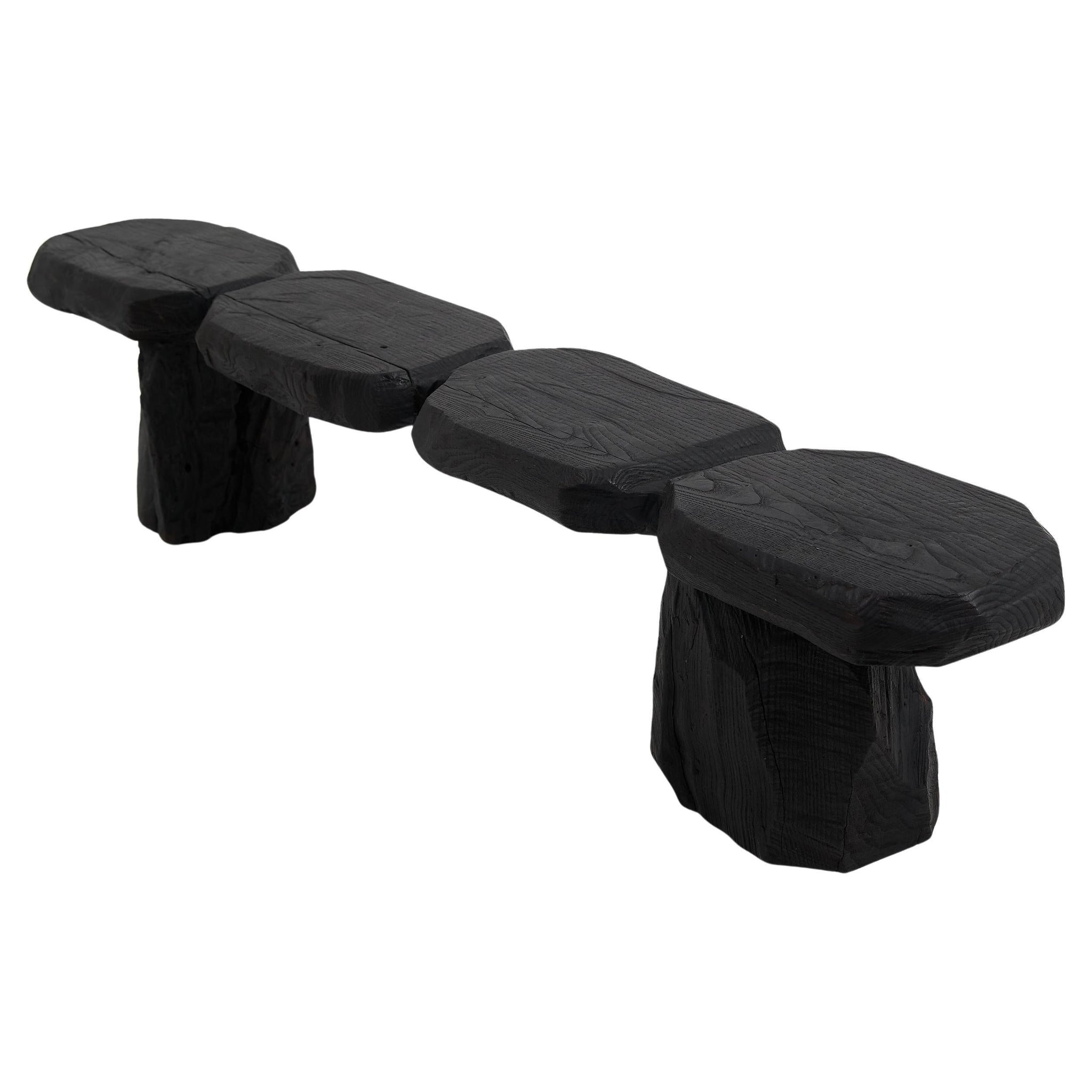 Black Burnt Wood, Brutalist Bench, Outdoor & Indoor, Natural and Eco Friendly