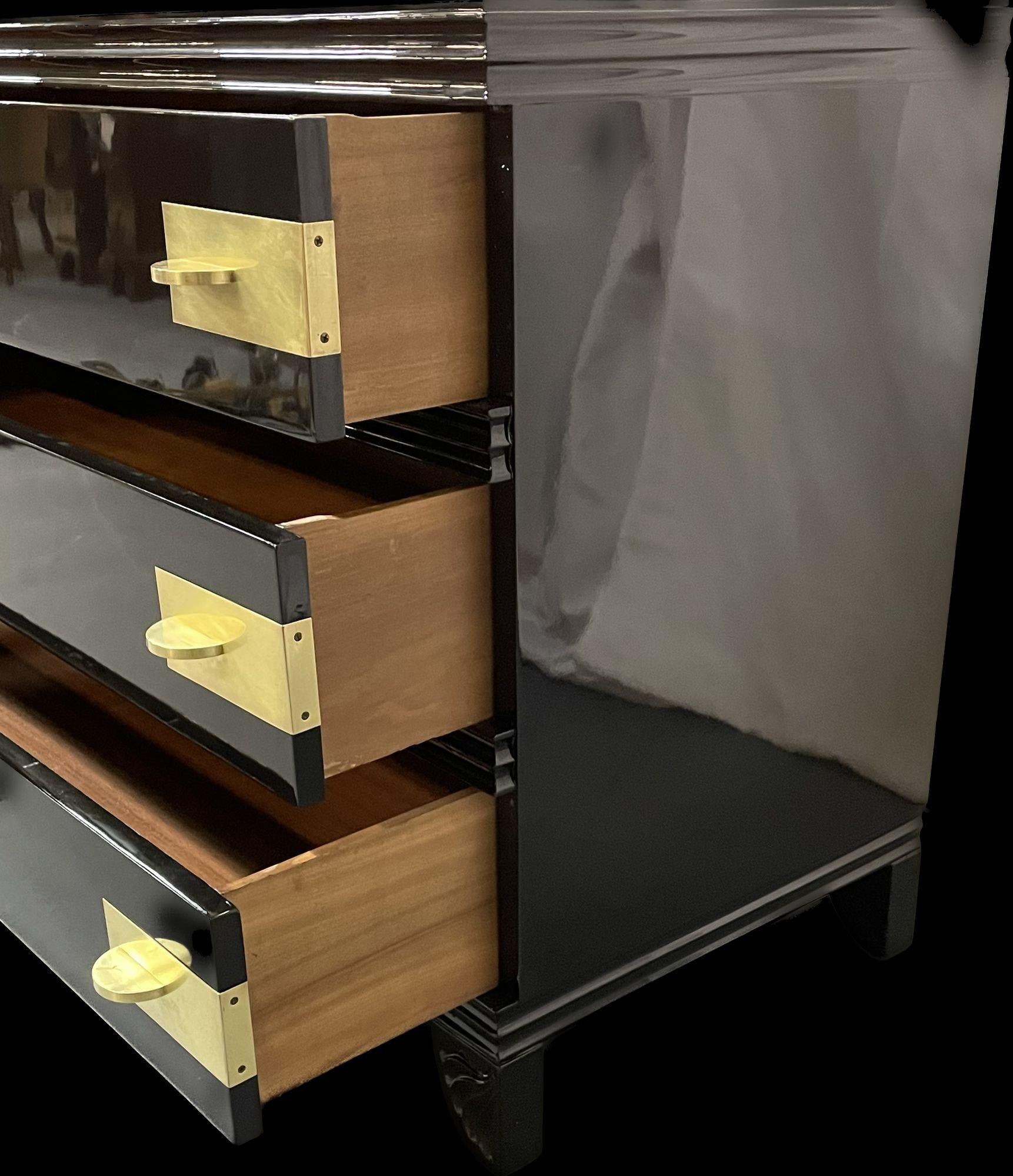 Black Lacquered Campaign Chest, Hollywood Regency, Parzinger Style 1960s USA