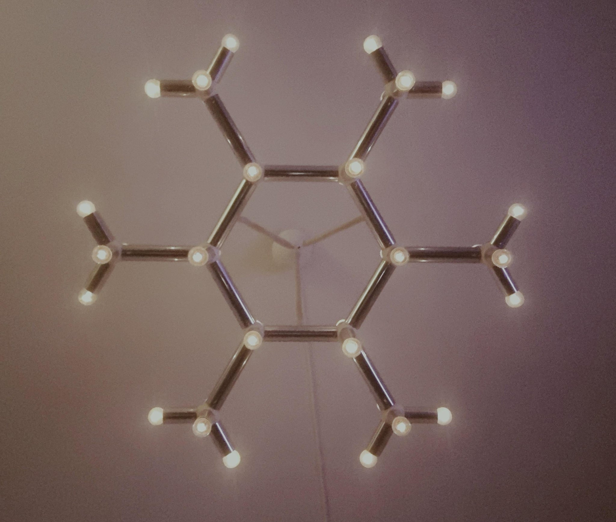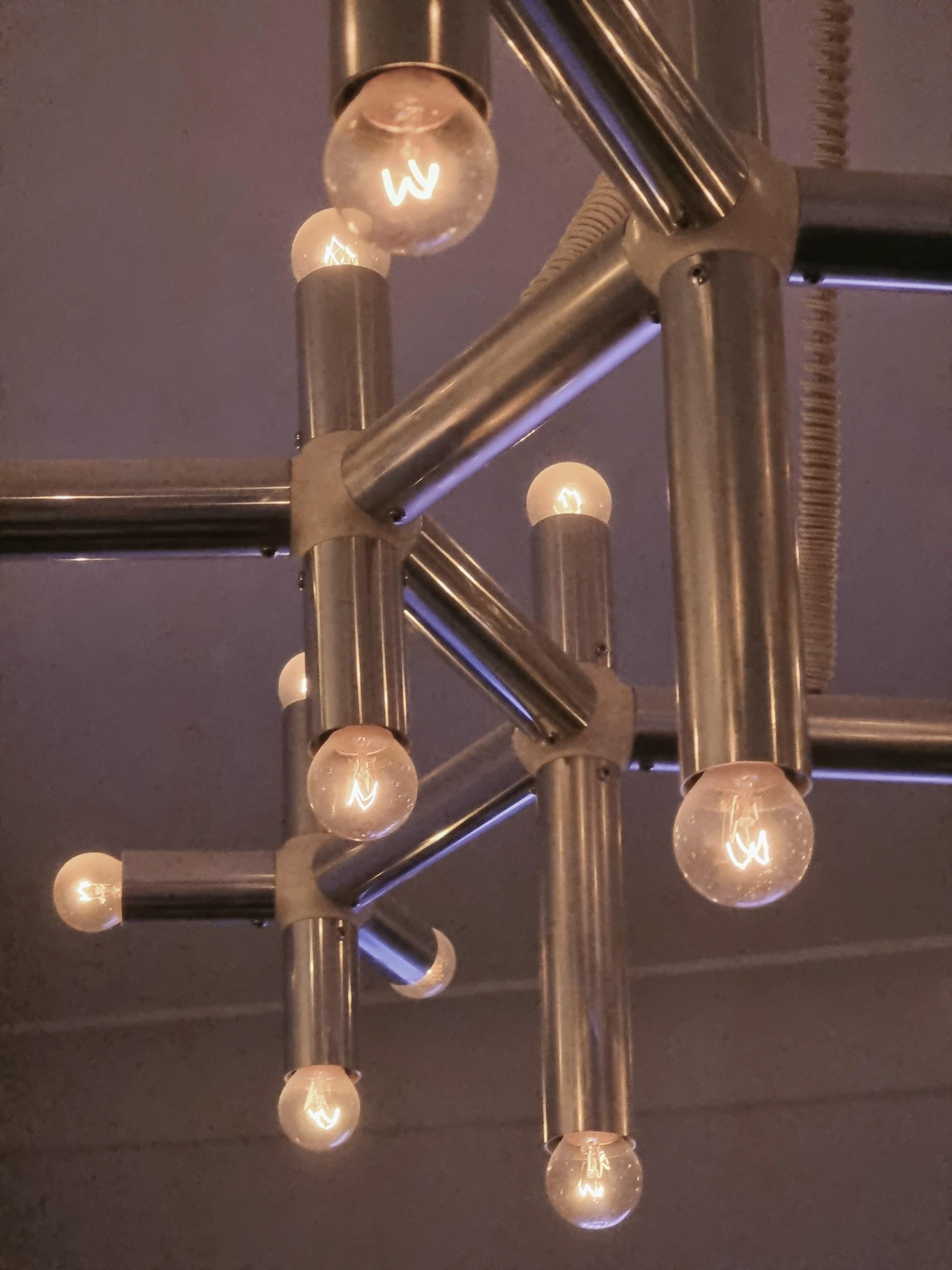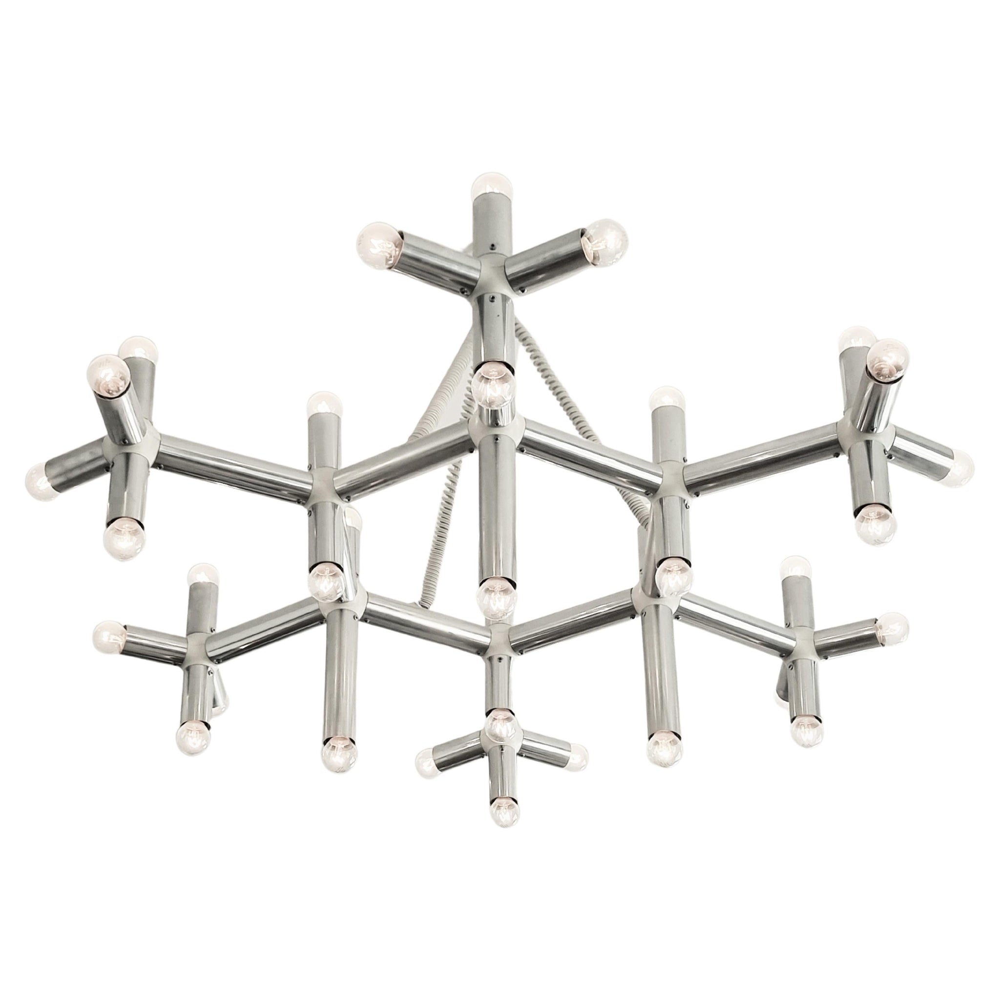 Large Chandelier, model "Atomic", Midcentury Modern, white plastic and aluminium