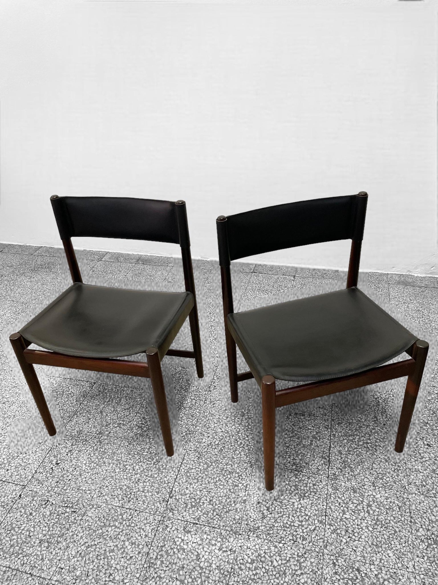 Set of 4 Dining Chairs in Black Leather by Kurt Østervig for Sibast, 1960s