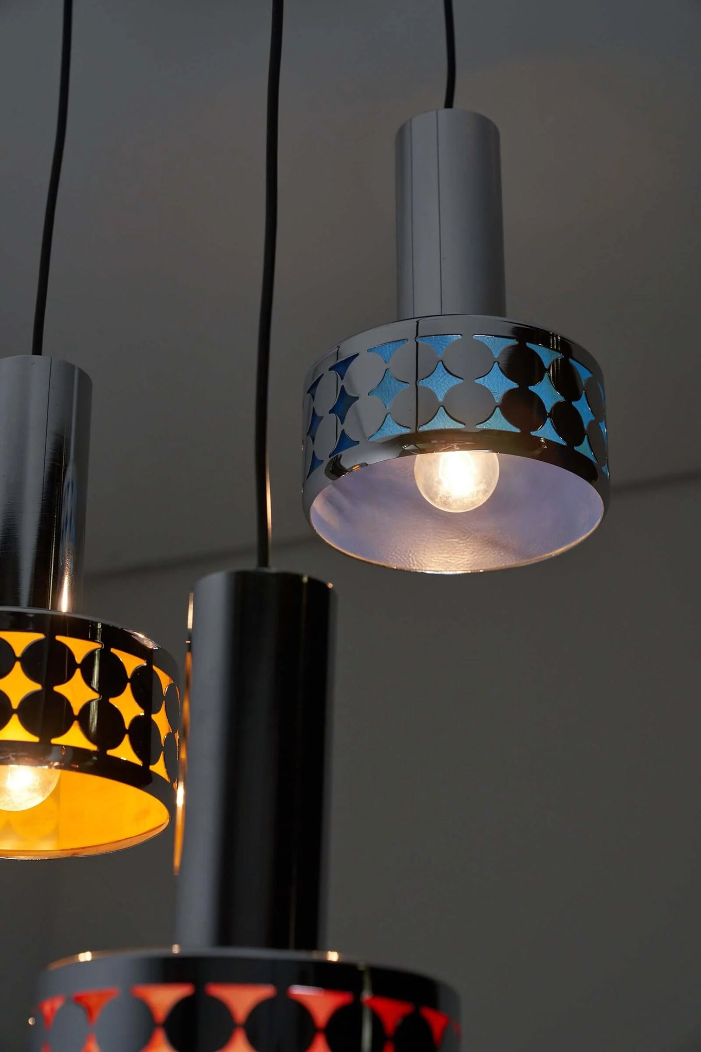 Colorful Cascade Chandelier, Metal, 1970s, Europe