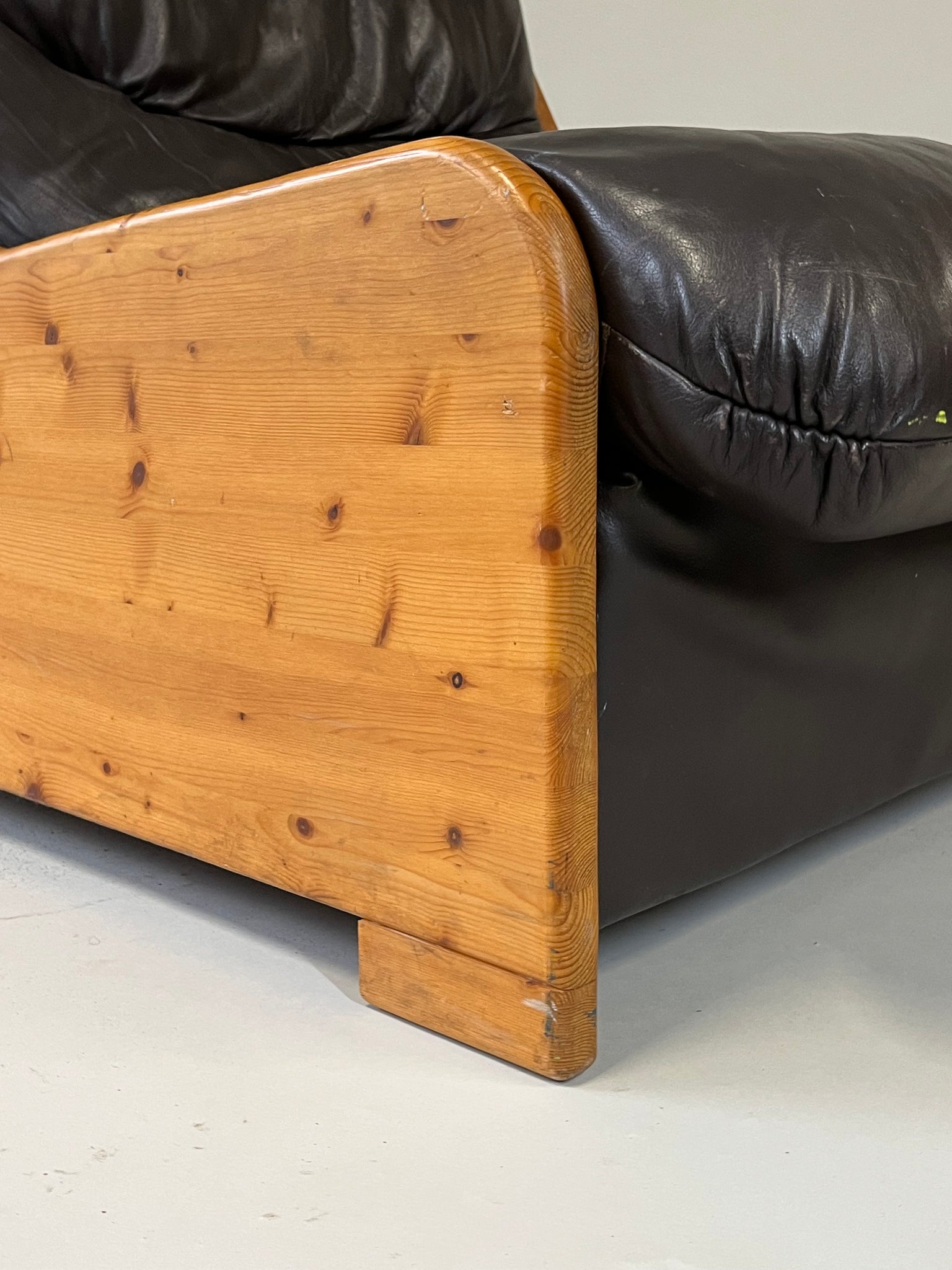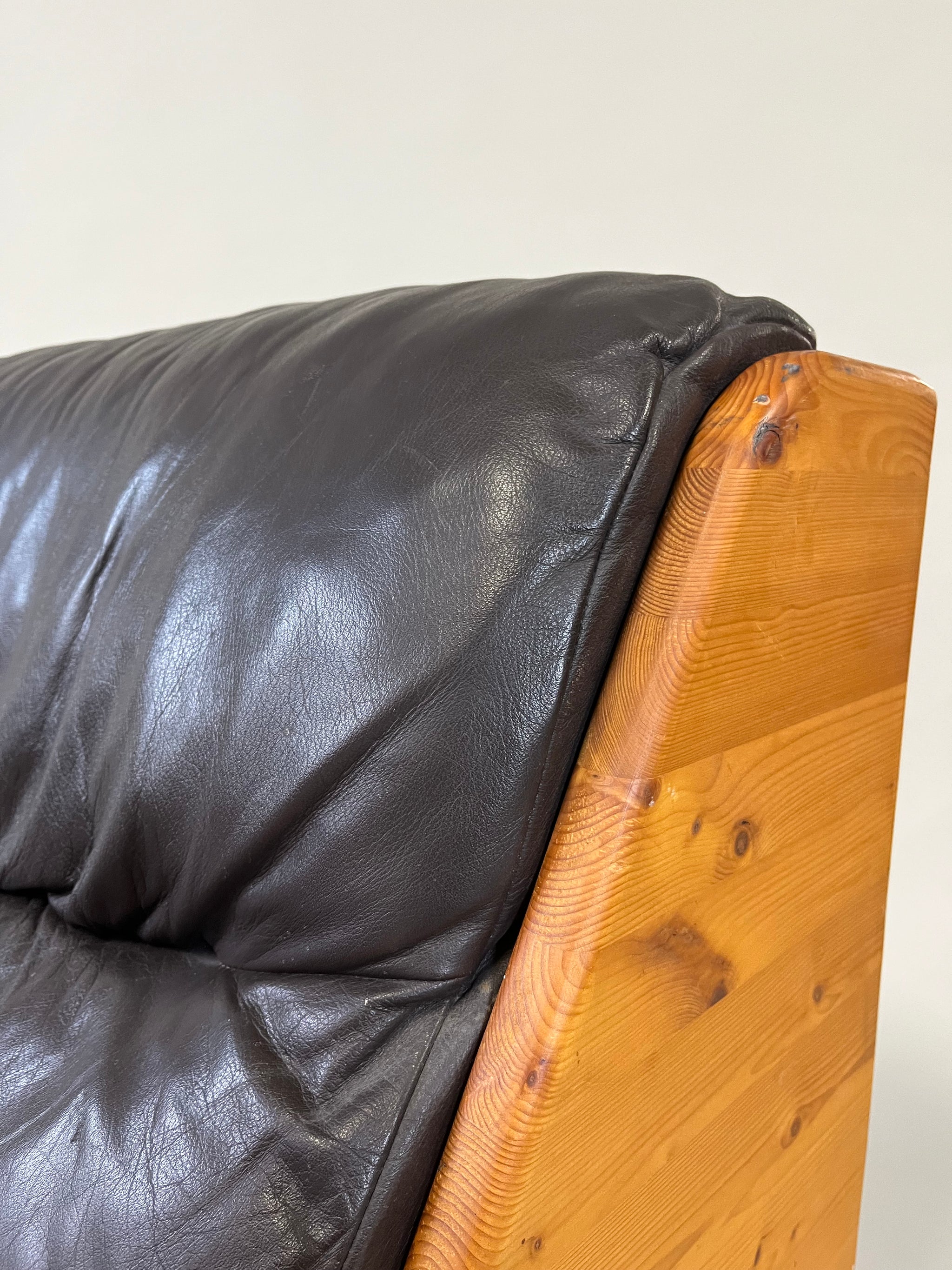 Brutalist Leather Armchair, 1970s, Europe