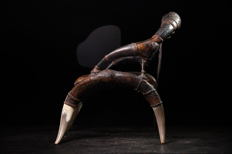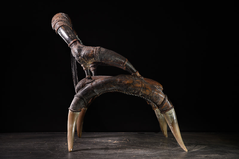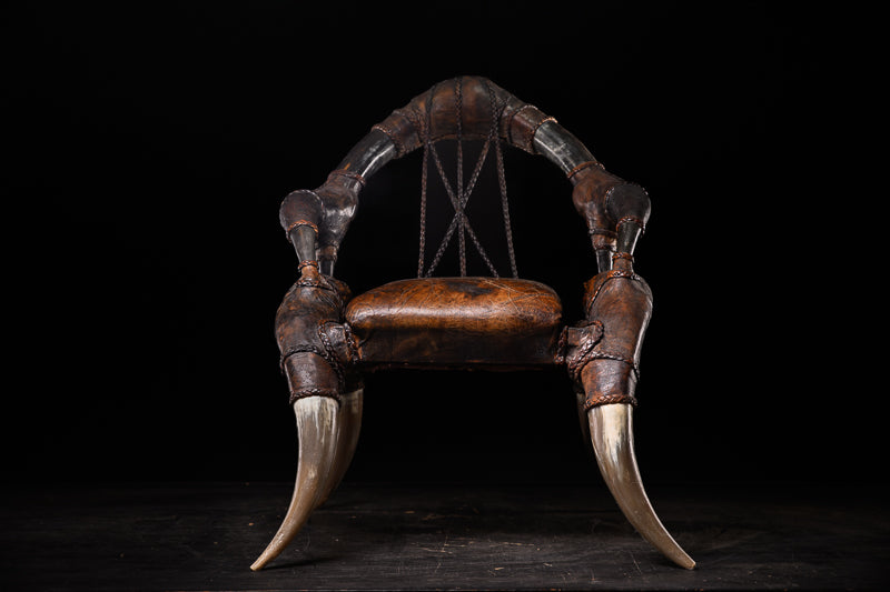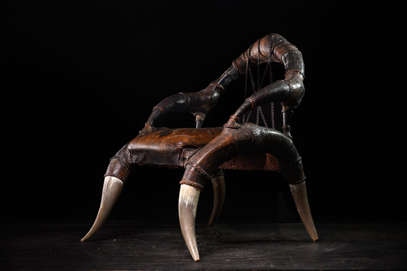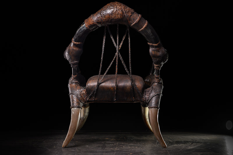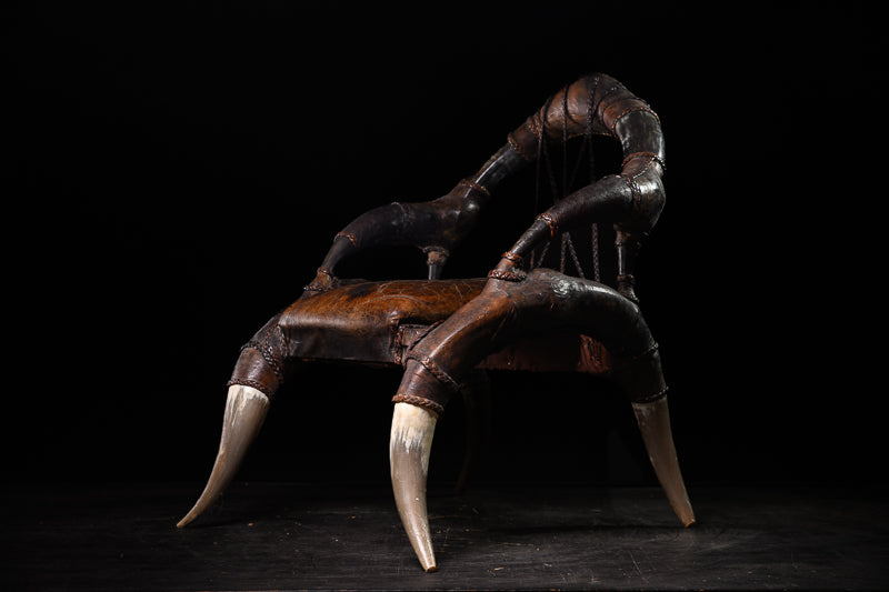 Colonial Horn and Leather Lounge Chair Early 1900s Africa