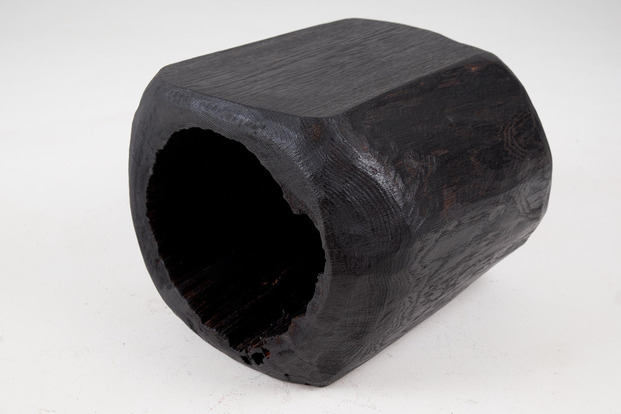Rustic Side Table, Stool, Burnt Black Oak Wood