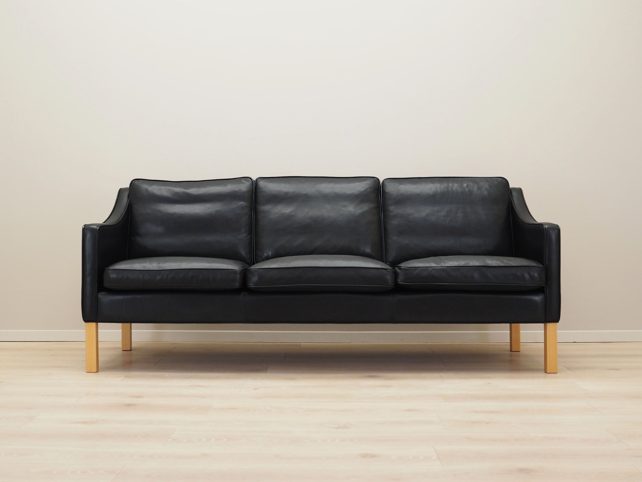 Black leather sofa, Danish design, 1970s, manufacture: Hurup Møbelfabrik