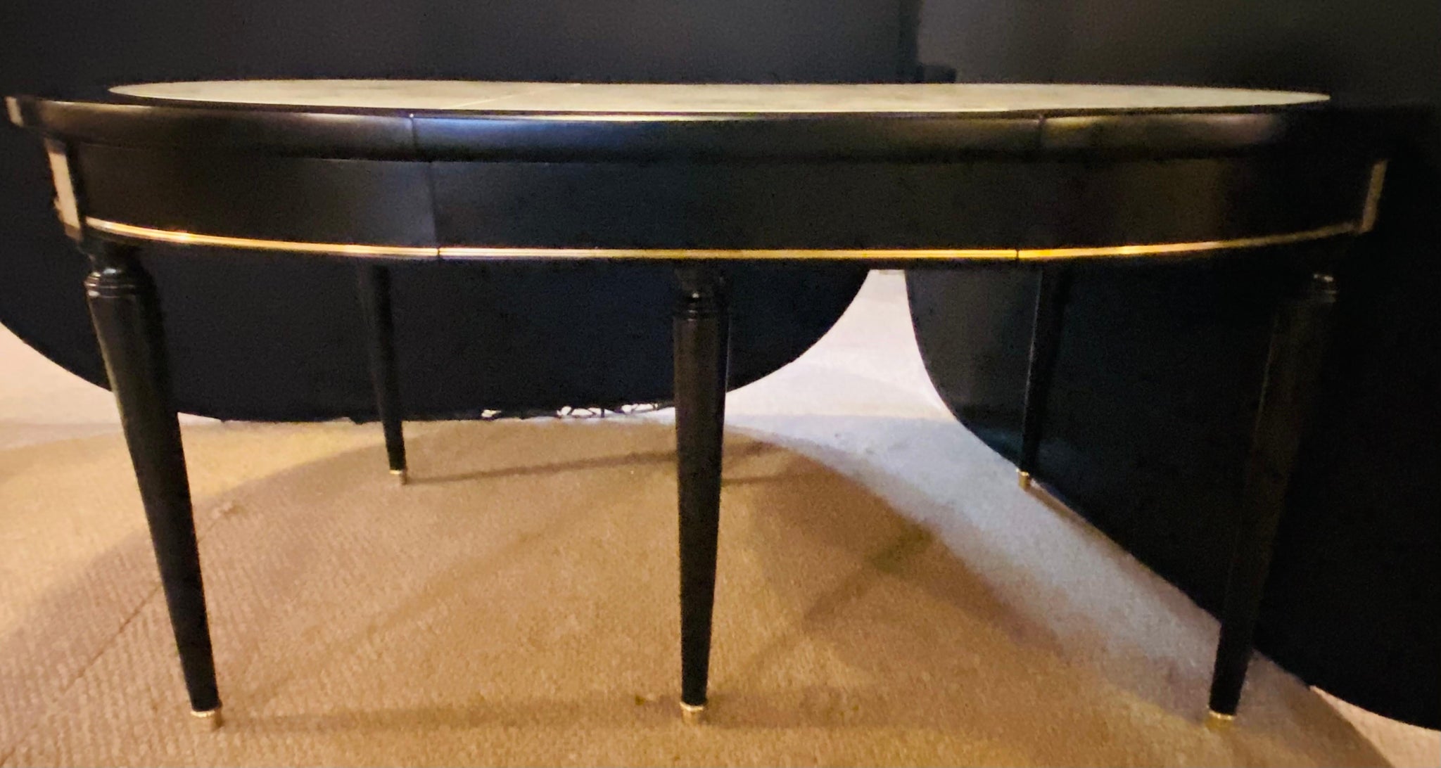 Hollywood Regency Ebony Dining Table, Jansen Style Marble Top, 1930s France