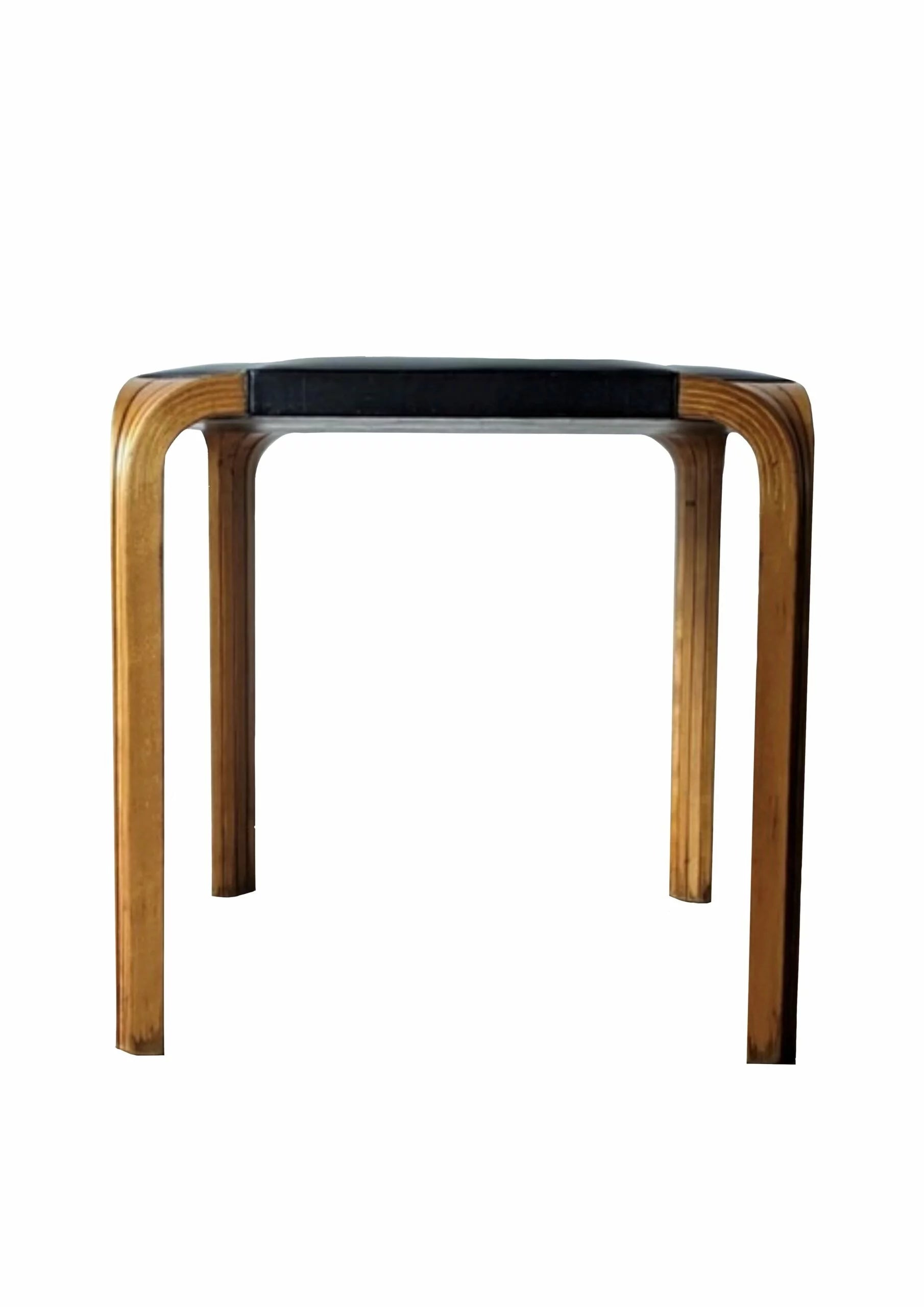 Stool S601 Alvar Aalto Bentwood Leather 1950s Finland